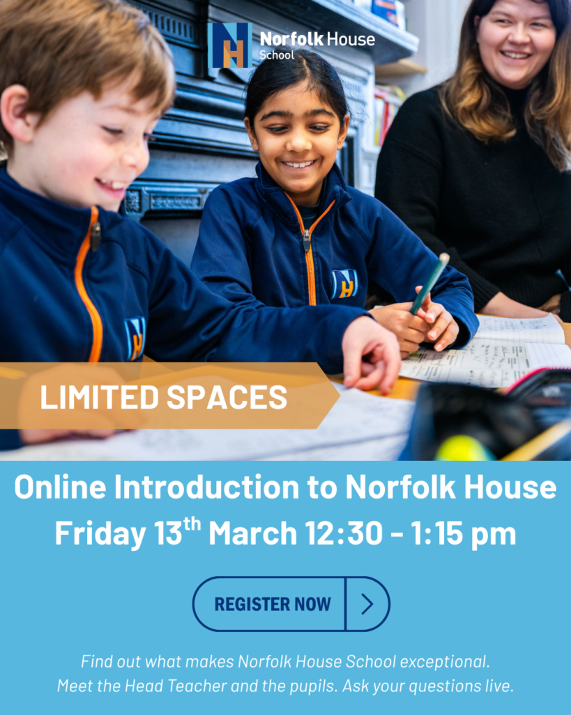 If you’d like to learn more about what a non-selective education at Norfolk House could offer your child and/or if you’d like to come and see our school, please request a prospectus, or contact us at admissions@norfolkhouseschool.org.